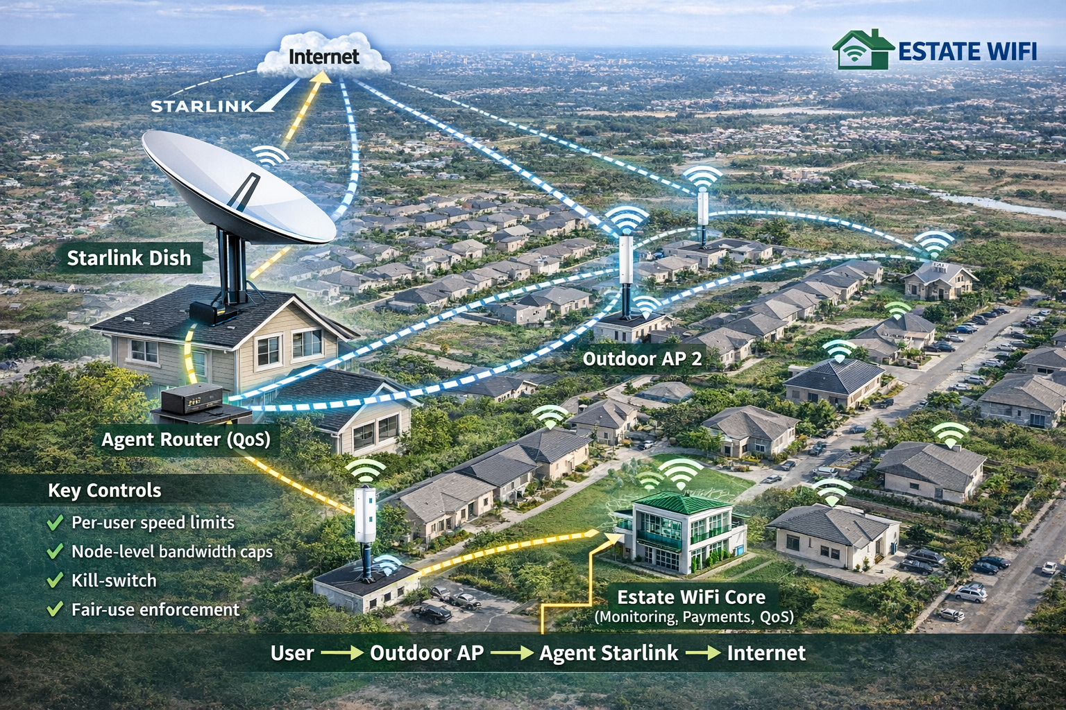 Bring fast, stable Starlink internet to every home in your estate—no fiber needed.